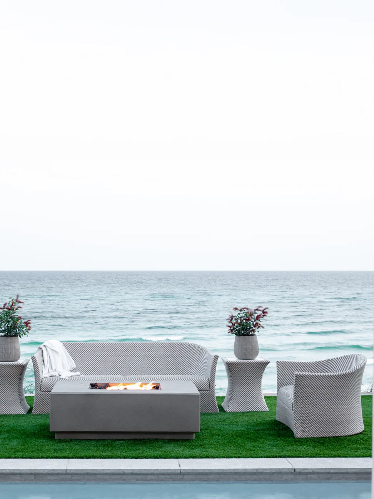 The Bari Swivel Lounge pairs timeless elegance with smooth, functional motion—rotating a full 360 degrees for dynamic outdoor relaxation. Fully wrapped in the collection’s signature two-tone chevron N-Dura™ resin wicker, it brings durability and visual texture to any setting. Designed for poolside or humid environments, it features a built-in water-resistant reticulated foam cushion for plush comfort without the need for traditional removable cushions. Its curved silhouette and generous proportions offer a stylish, low-maintenance retreat ideal for both lounging and conversation.