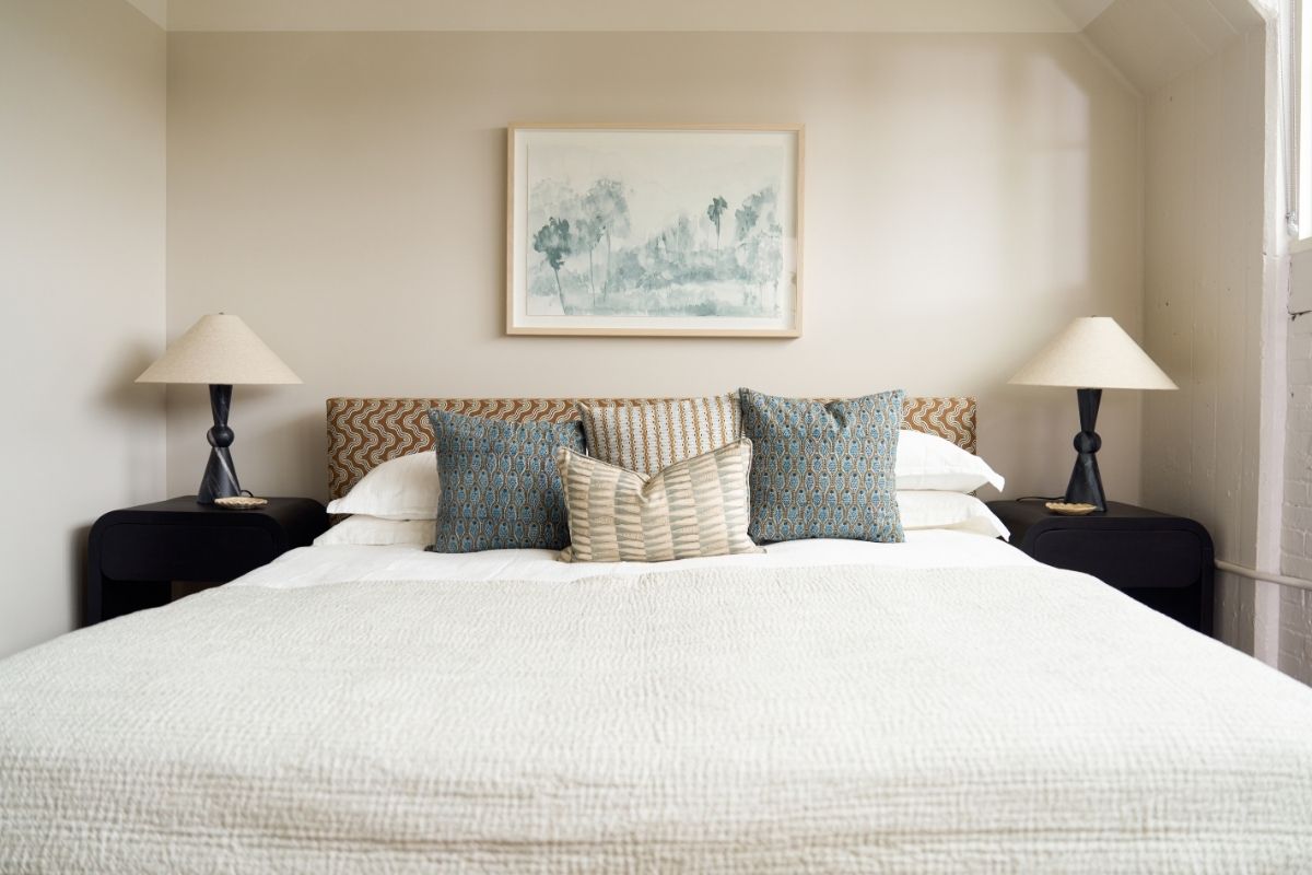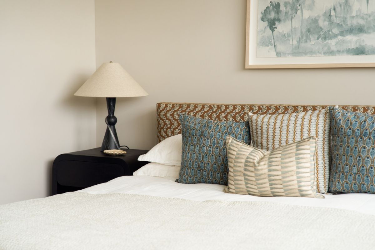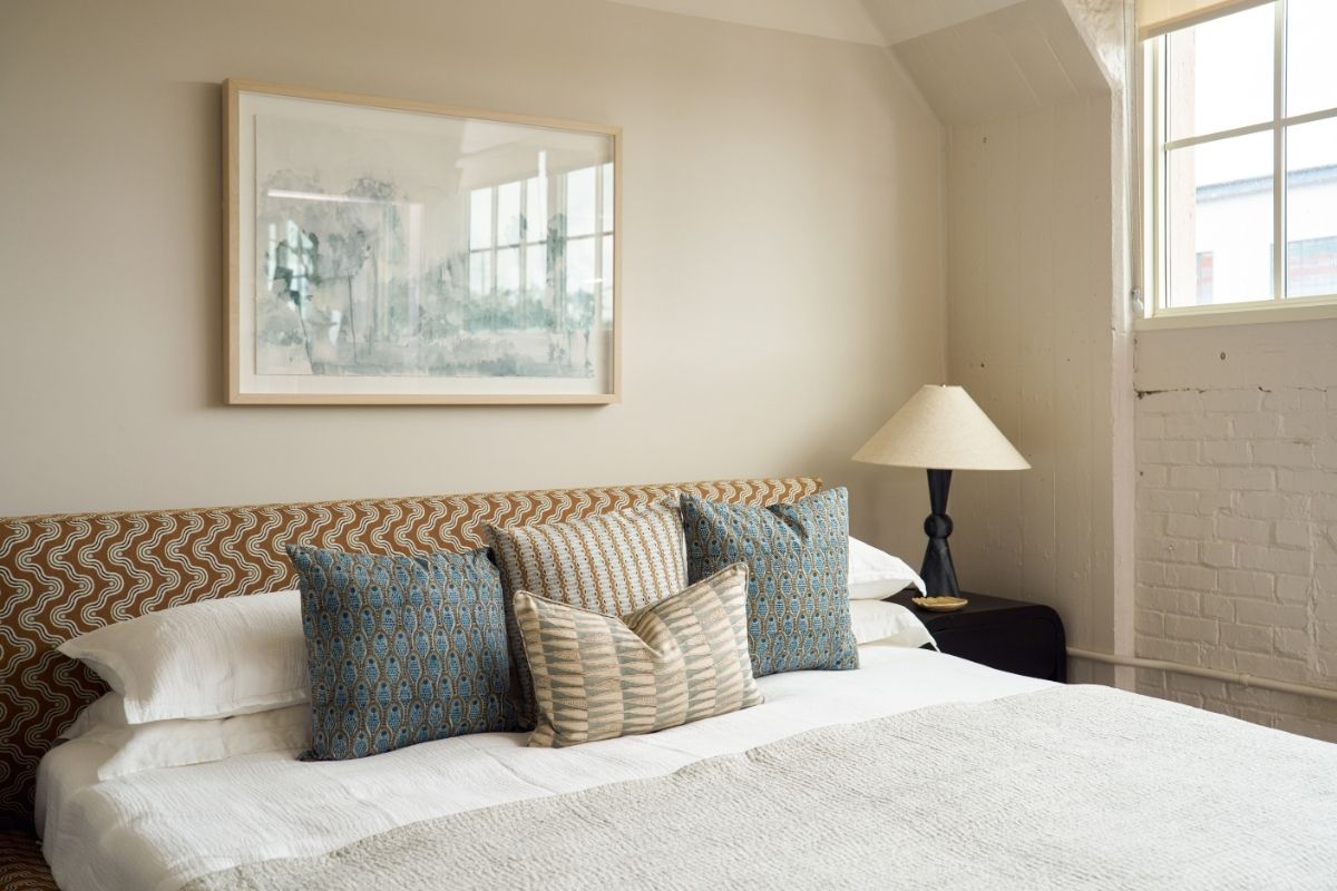 The Oaklynn Bed combines timeless design with modern artistry, featuring a clean silhouette upholstered in Sunbrella × Block Shop performance fabric. The bold, geometric textile brings pattern and personality, while the durable, easy-care fabric ensures everyday comfort and lasting style.