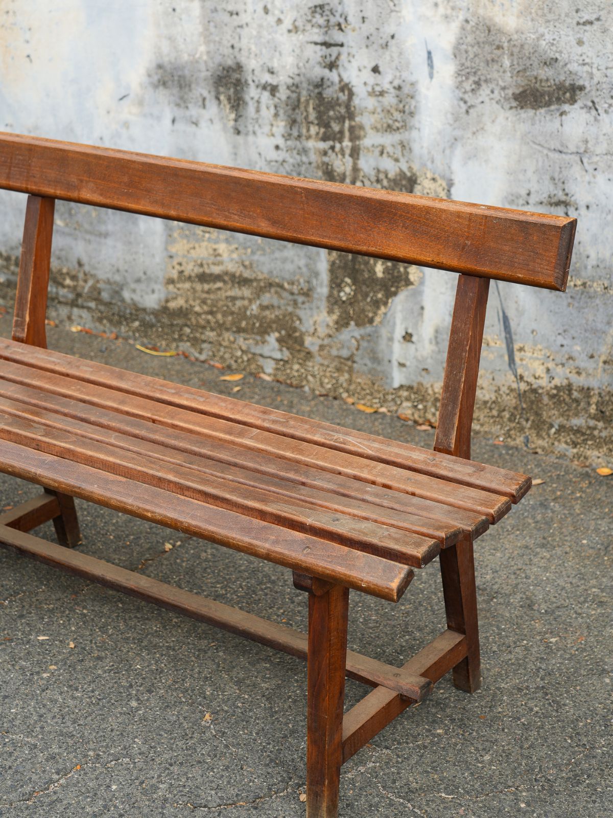 Extra-long wooden bench with a simple, linear frame and warm natural finish. Generous in scale with a clean, utilitarian look.