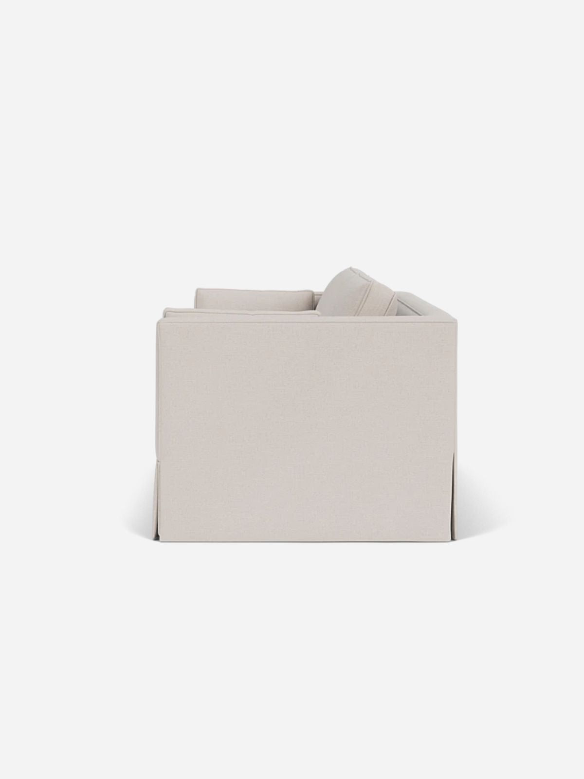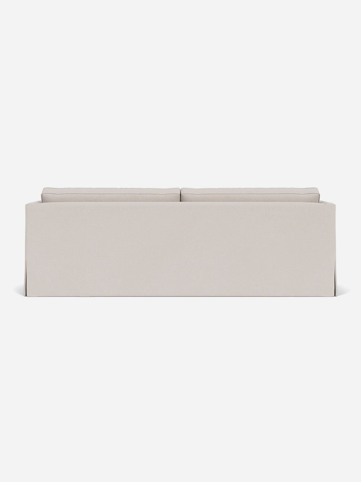 Striking a harmonious balance between contemporary flair and traditional grace, the Grand Sofa features a chic tailored skirt and sleek lines, exuding timeless elegance. The modern bench seat and optional elongated back cushions offer a fresh look, while the luxurious seating invites extended lounging sessions. Notably, it's a lower-back sofa, with armrests and the back maintaining equal height, enhancing its sleek silhouette and making it a versatile choice for diverse living spaces.