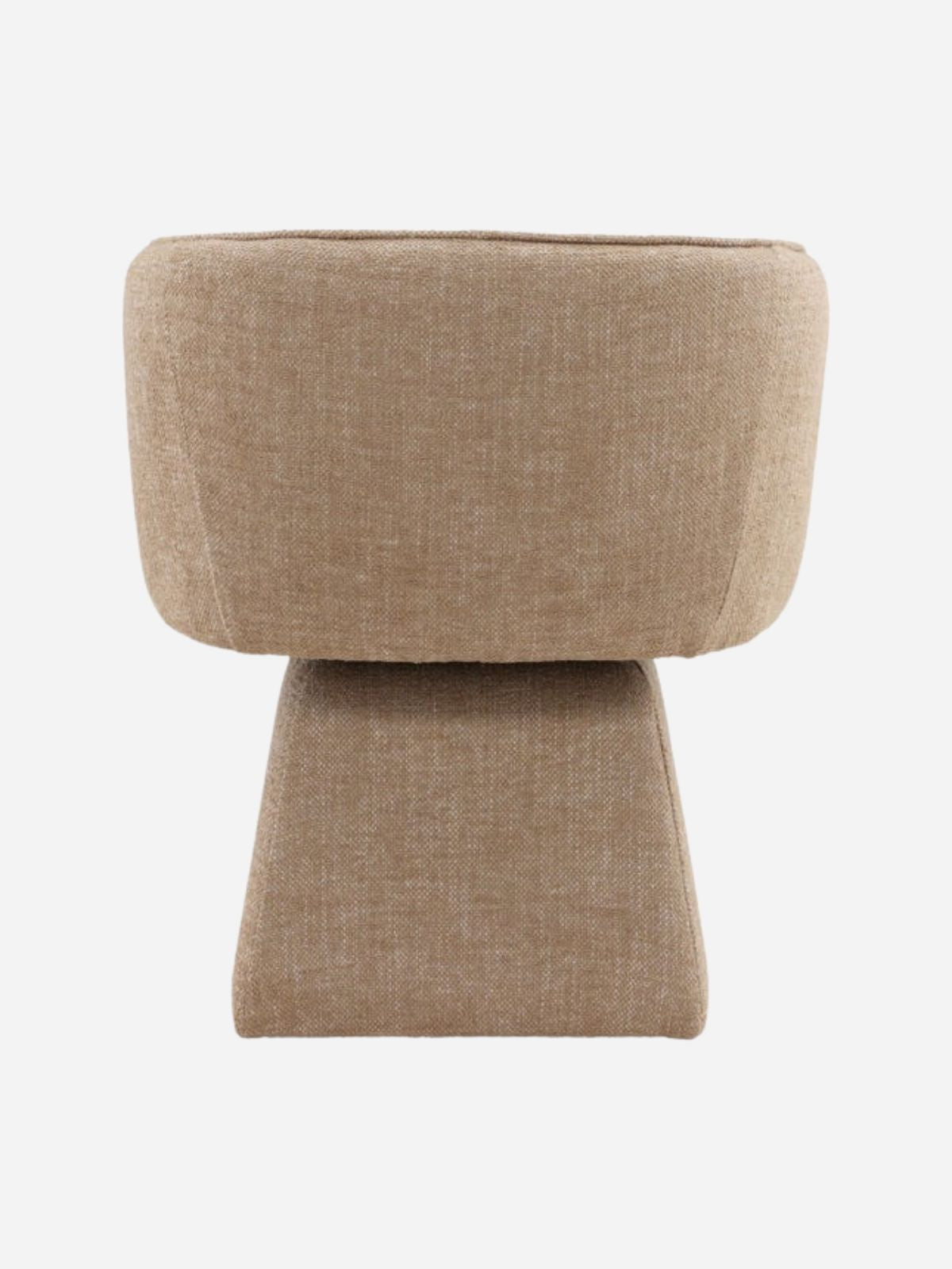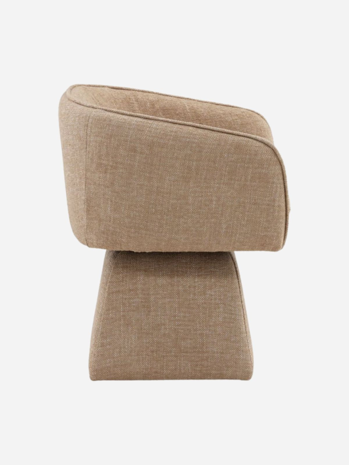 The Jonie Dining Swivel Chair features a softly upholstered seat and back in a warm camel-toned basketweave fabric, combining comfort, texture, and effortless style. A smooth swivel base gives flexible seating — great for long dinners, casual meals, or gathering around the table.