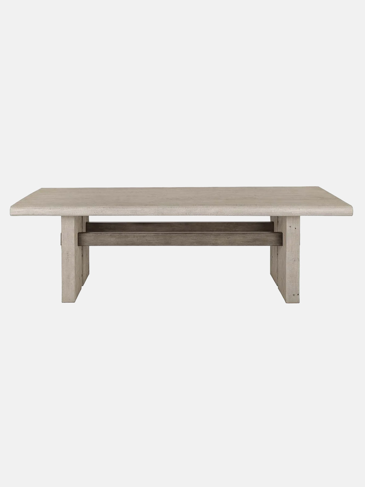 The Larson 96" White Dining Table is made of reclaimed pine wood and makes a sturdy, durable, and attractive dining setting.