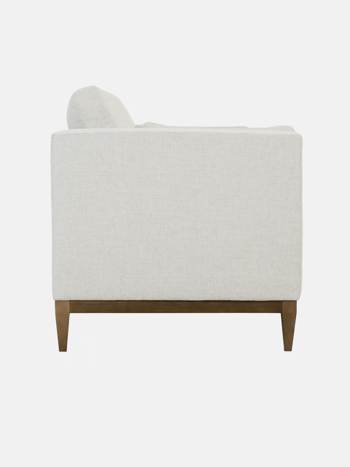 For all the geometry enthusiasts out there, the Leo sofa presents right angles at every turn. The skinny track arms meet at the straight back, perfect for smaller spaces. Its lines are further accentuated by an exposed wood base and an elongating bench cushion.