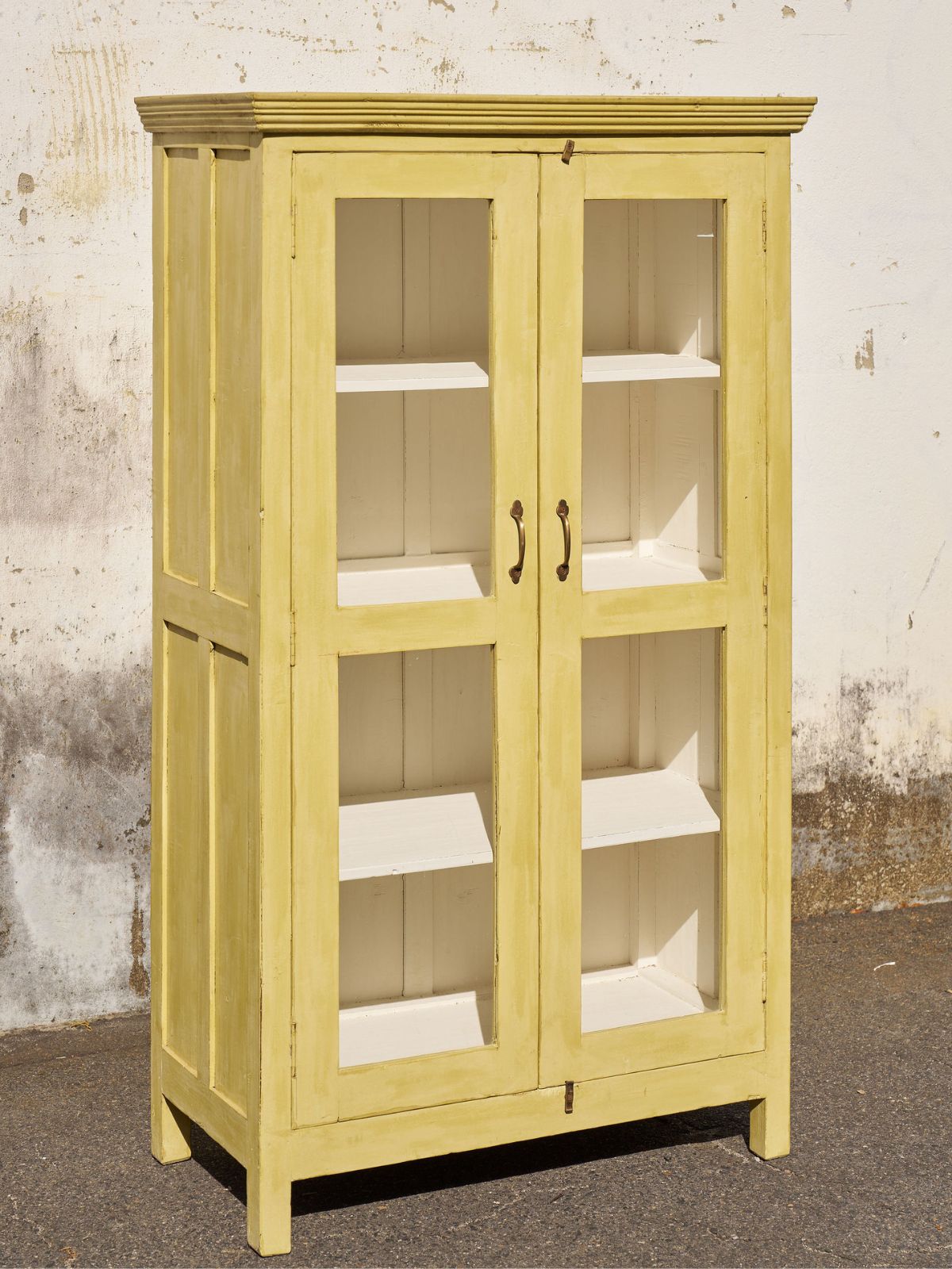 This Vintage Yellow Cabinet comes all the way from India and is hand-crafted and hand-painted, making it completely one-of-a-kind!
