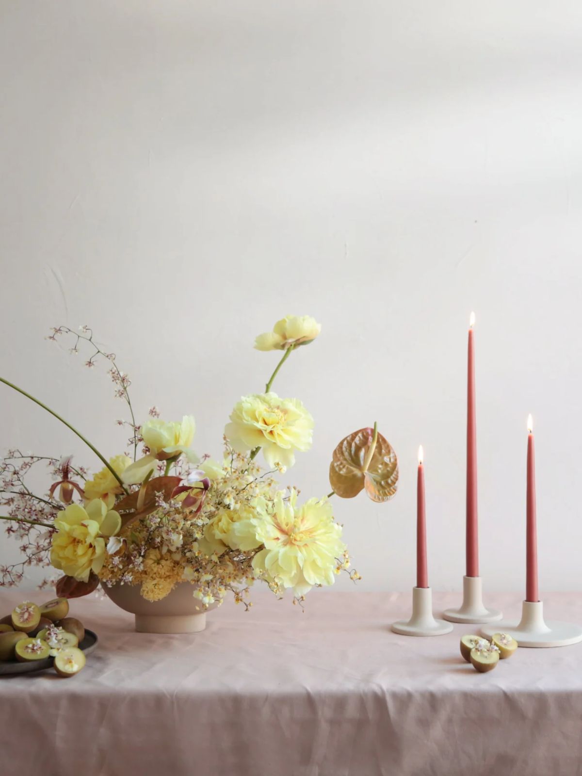 These colors are inspired by nature's natural hues and these taper candles are meant to be burned as a daily ritual or to commemorate a special occasion. Each candle is dipped 35 times for a superior depth of color, and pairs are joined by a braided cotton wick for the cleanest burn. Crafted of high grade paraffin, these tapers are made in the United States and are designed to burn drip-free at a rate of approx. 1 hour per inch.