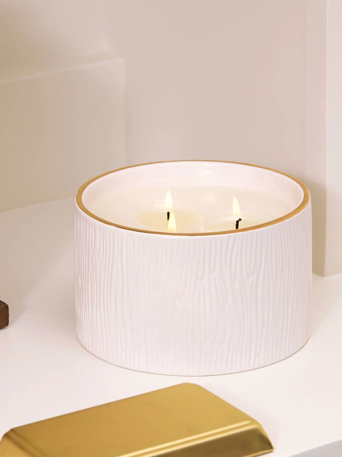 A time-honored classic, this multi-wick candle featuring a 24-karate gold rim is the perfect way to experience the mountain fresh aroma of Frasier Fir.