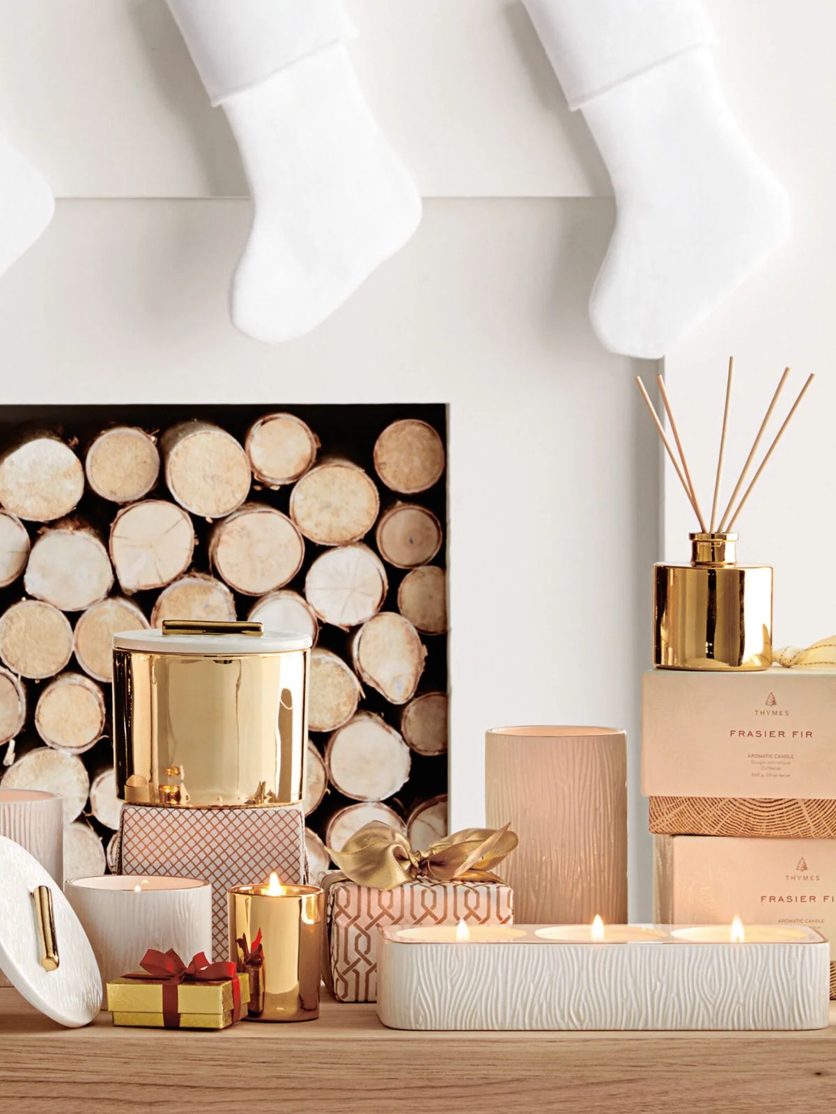 Perfectly sized to fill cozy spaces with the crisp fragrance of Frasier Fir, this Gold Petite Reed Diffuser is a stunning accent piece for any home.