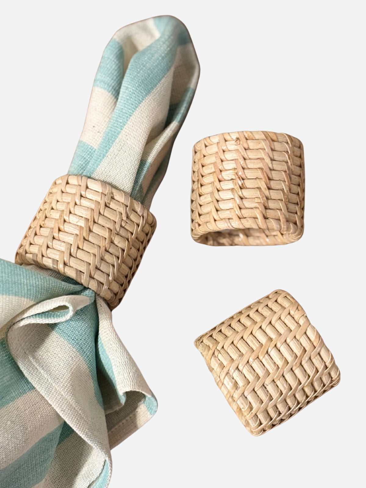 Bring natural texture to your table with these handwoven rattan napkin rings. Each one is crafted with care, adding an organic, effortless touch to any tablescape.