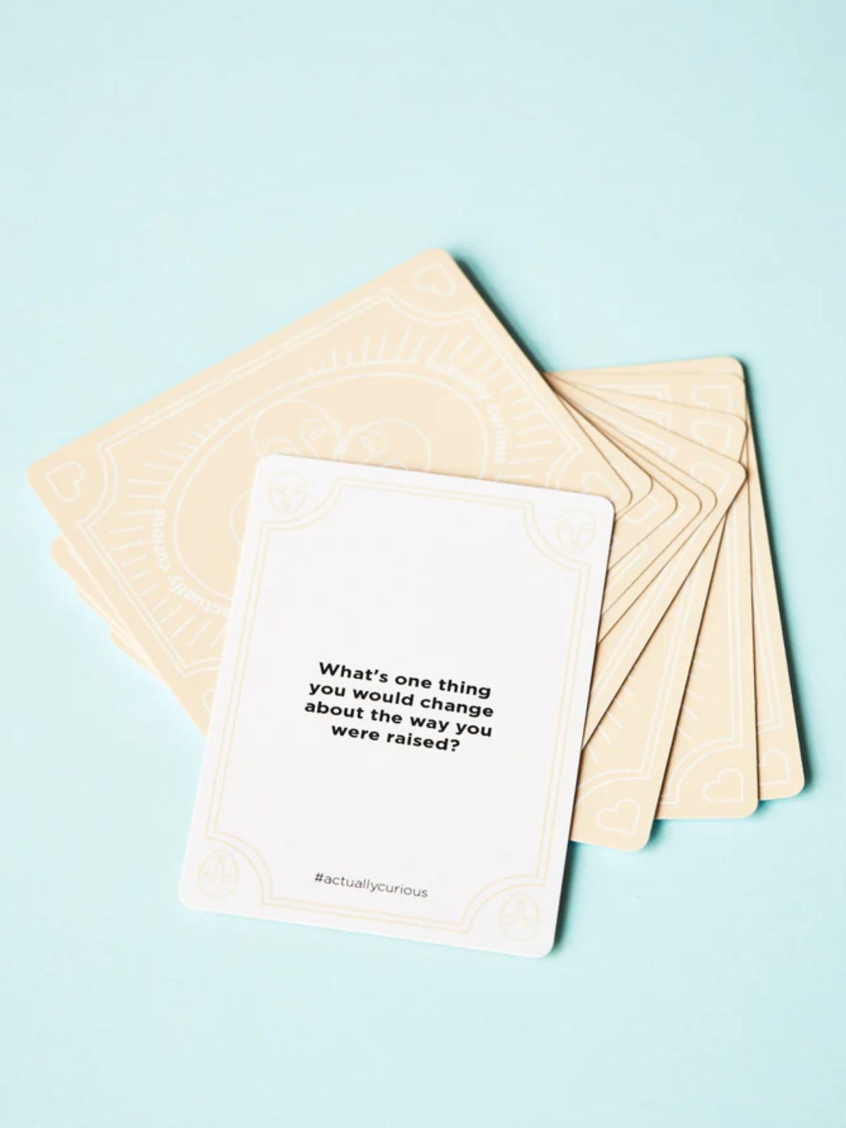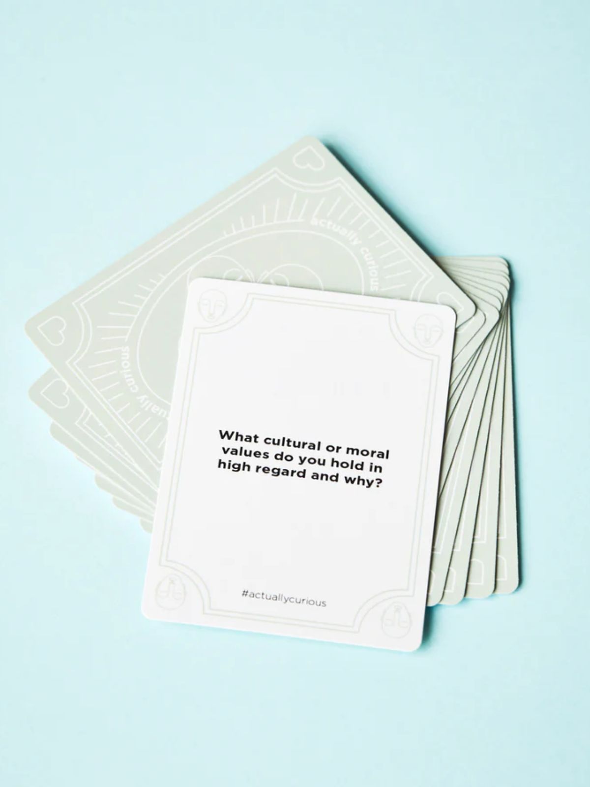 Foster trust and meaningful connections with the Curiosity Edition, designed with four progressive levels: start light with Blue, go deeper with Green, Yellow, and finish with Pink. This format ensures players build trust as the game progresses, opening up to more profound conversations about background, personal values, mental health, and beliefs on important issues.
