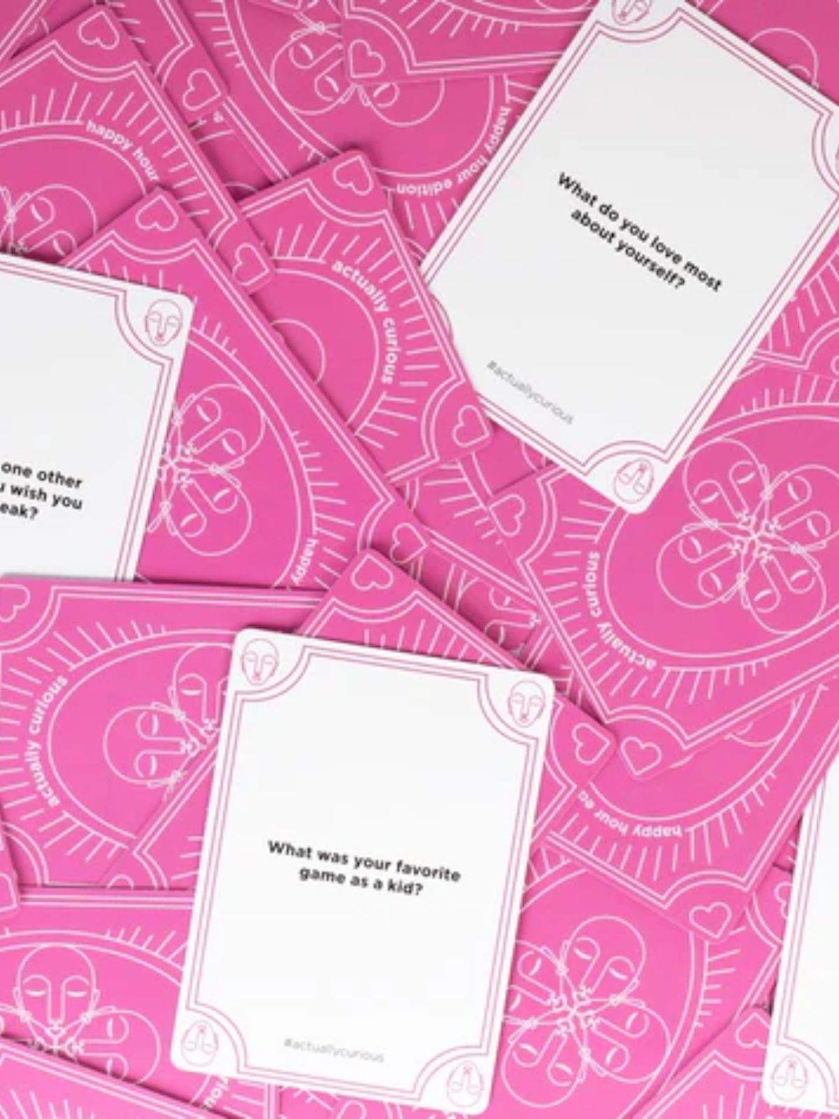 The Happy Hour Edition is an intentional conversation starter with fun, light-hearted questions that create unforgettable moments. This deck includes questions that explore our dreams, ambitions, and cherished memories to help foster positivity, gratitude, and connection with family, romantic partners, co-workers, and friends old and new.