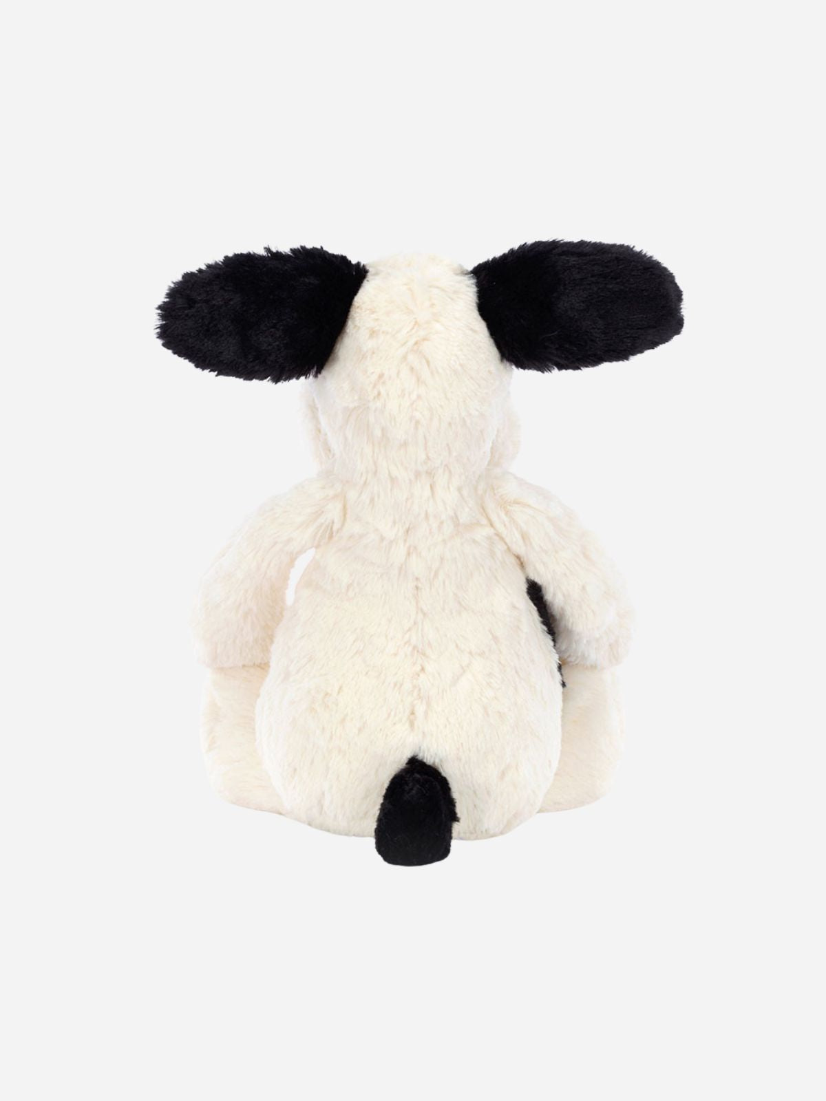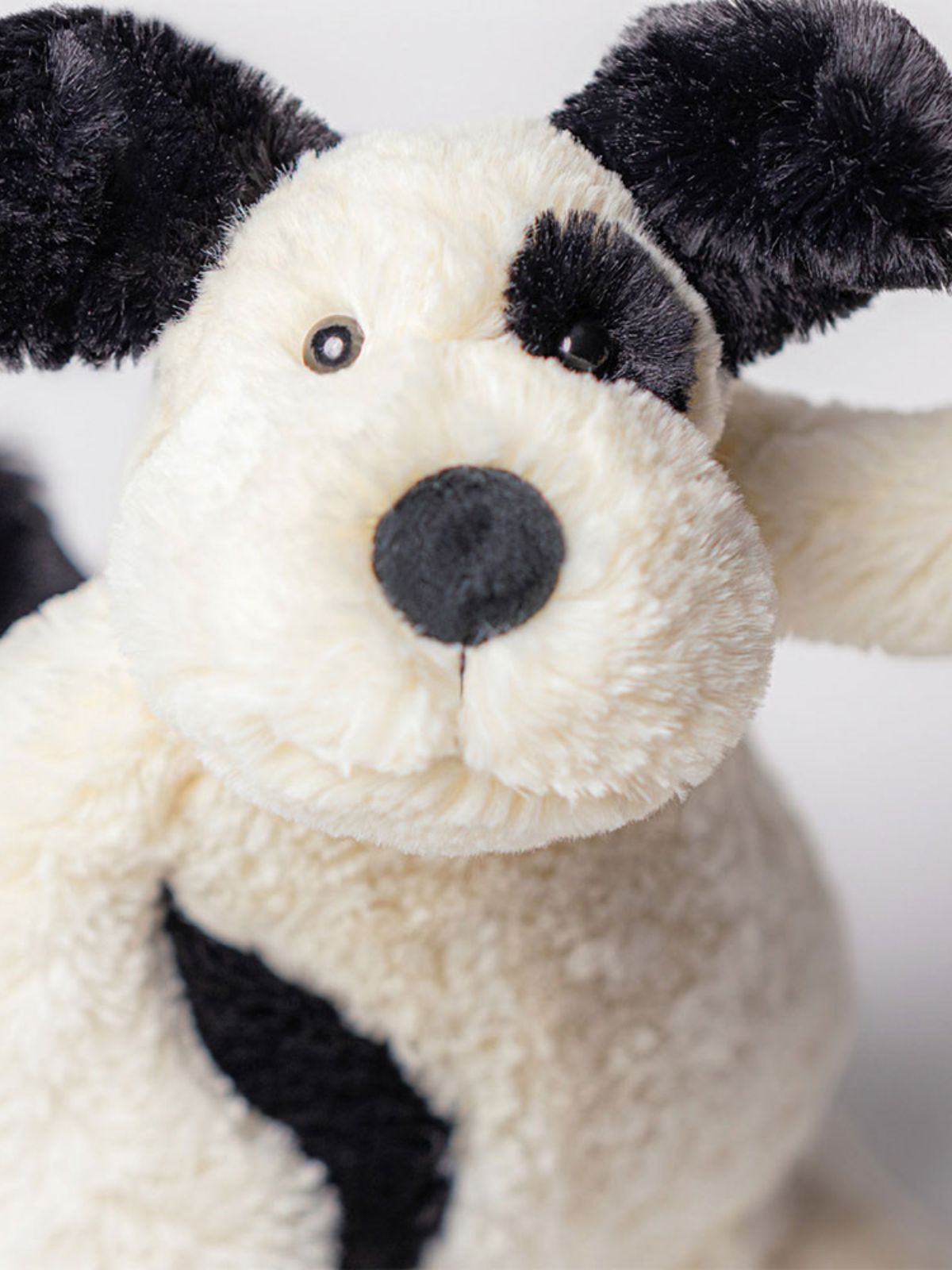 Bashful Rufferty Black & Cream Puppy might look like your average black-and-cream bundle of joy – but don’t be fooled. He’s got an origin story worth barking about. Bashful Bunny knew Bartholomew Bear wasn’t wild about the dark (who is?), so she gifted him a nighttime companion with the softest ears and the biggest heart she could find. Since then, Rufferty’s taken his role as Bart’s right-hand pup very seriously. He’s more than a cuddle – he’s moral support on call. Head of stage-side cheering (never once laughed at a misstep), custard cream quality control, and emotional backup during outfit fittings (the Aubergine look was… a journey). Loyal, lovable, and a little clumsy on hardwood floors, Rufferty follows wherever Bartholomew goes – and always sits when snacks are mentioned. He may be quiet, but he’s mastered the fine art of always being there.