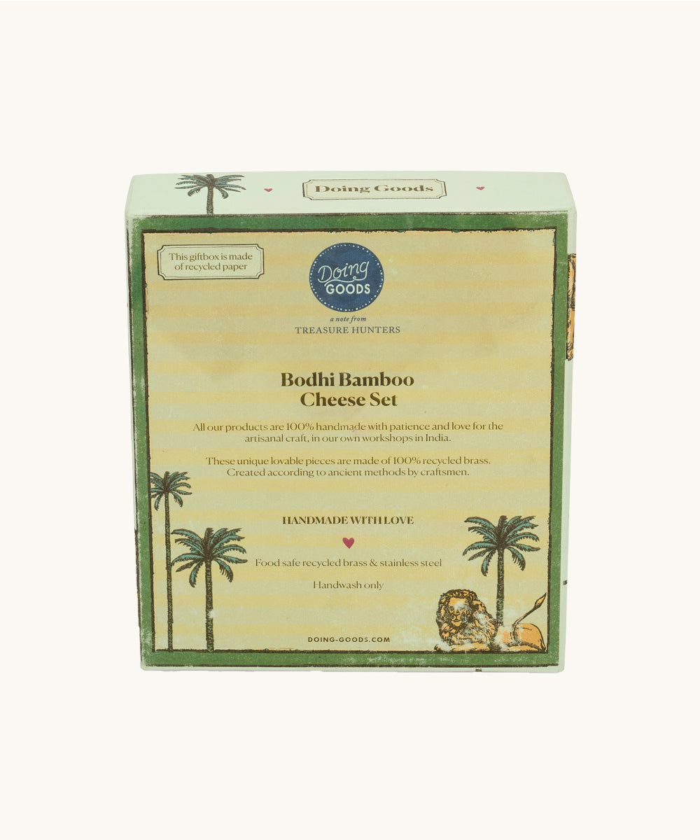 This cheese set is handmade in India. Due to the handcrafted nature of this item, expect slight variation in the appearance of each item. Perfect by no means, but unique all the more!