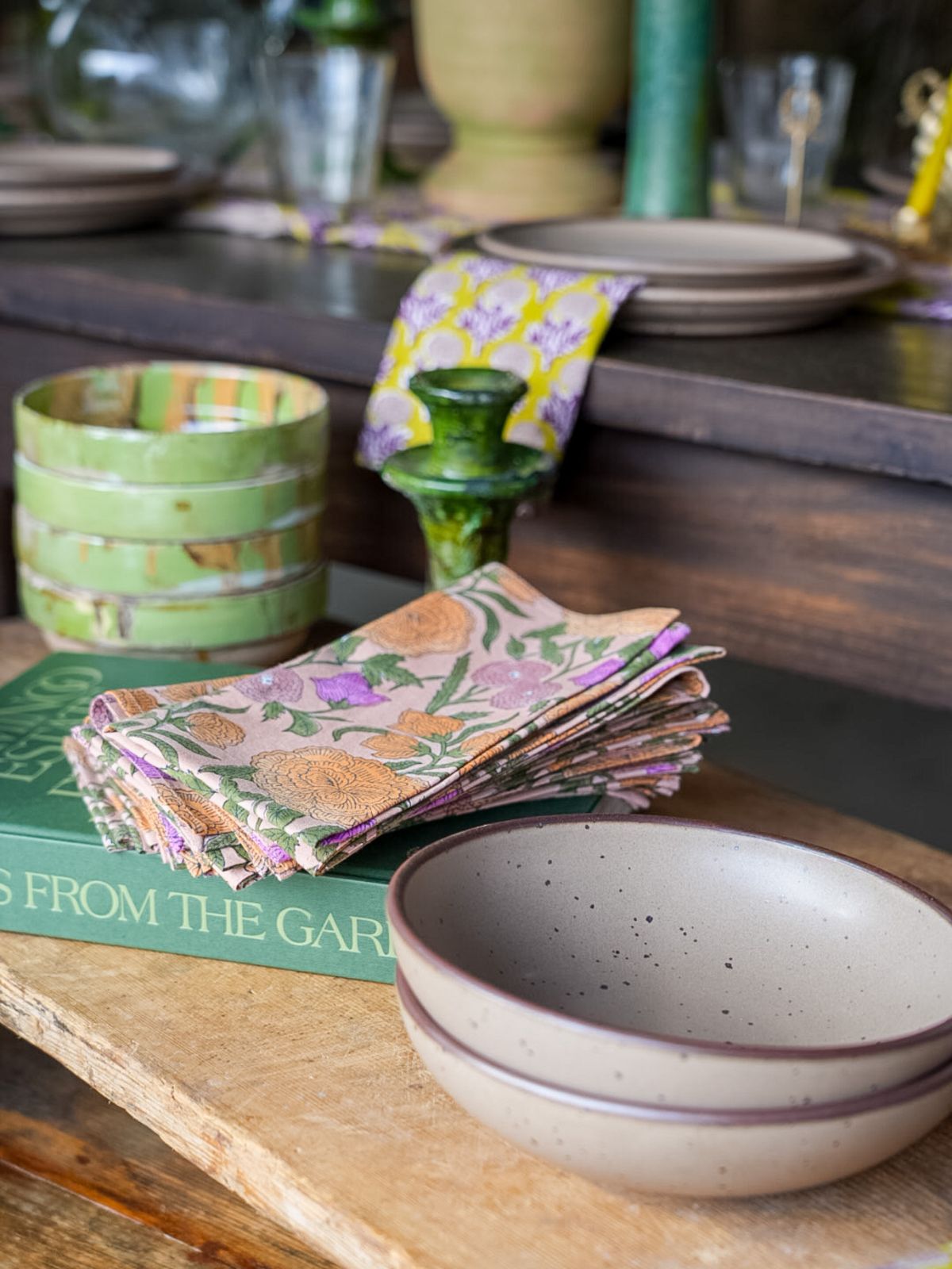 Nargis Old Rose Block-Printed Table Napkins, Set of 4