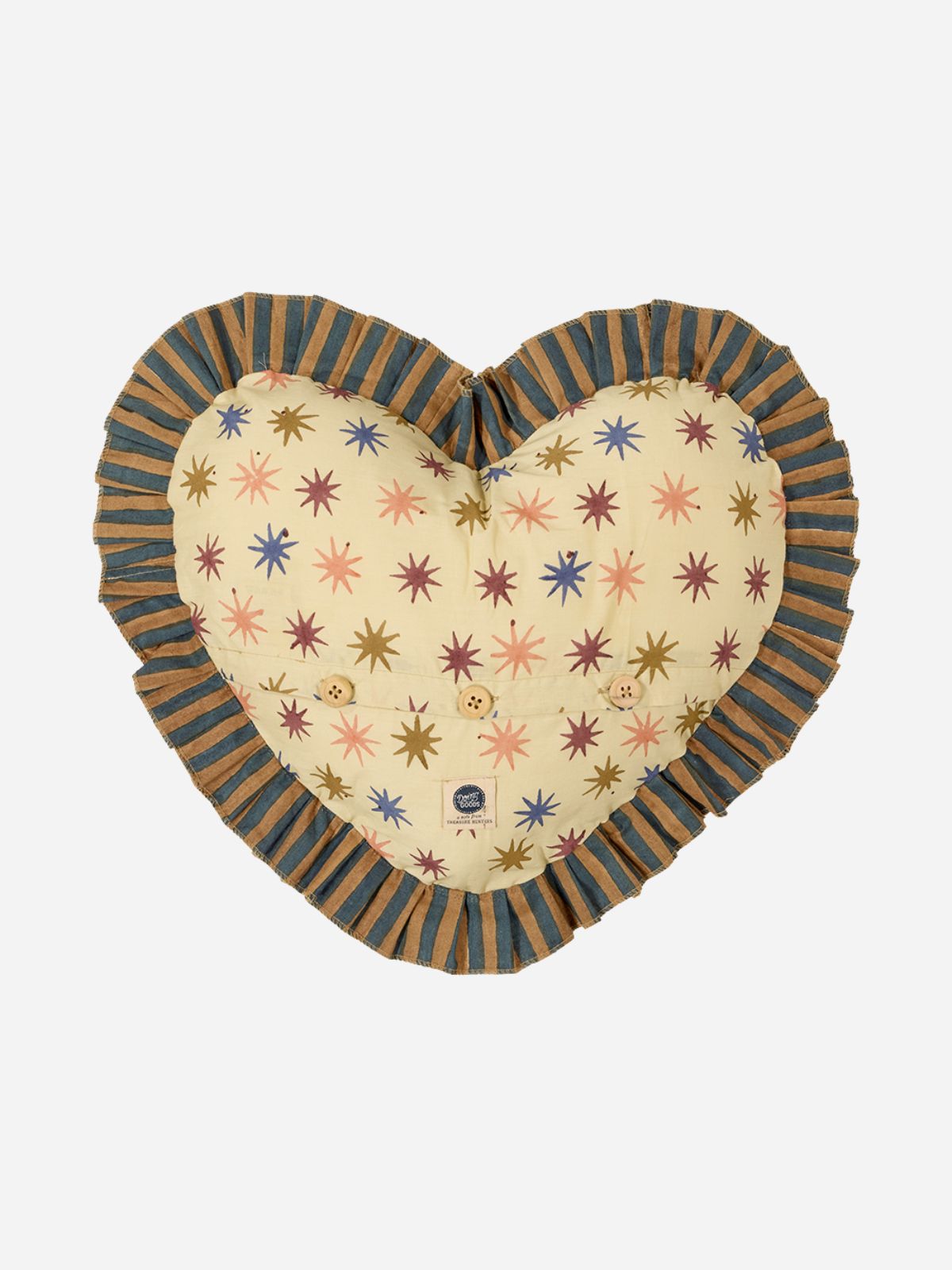 Add a touch of love and whimsy to your space with the Noa Star Heart Pillow. Made with inspiration from the new throw collection, this charming heart-shaped cushion features a playful star pattern and soft ruffled edges. Measuring 19.7 x 18.9 x 4.7 inches, it’s the perfect decorative piece to brighten up a kids' room, nursery, or cozy nook. Whether as a thoughtful gift for your loved one or as a unique addition to your home decor, this heart pillow brings comfort and style.