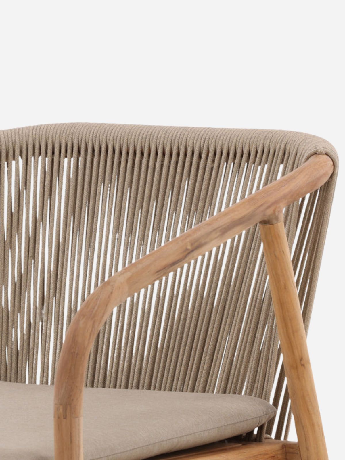 - Material: Teak, Synthetic Rope, Olefin Fabric