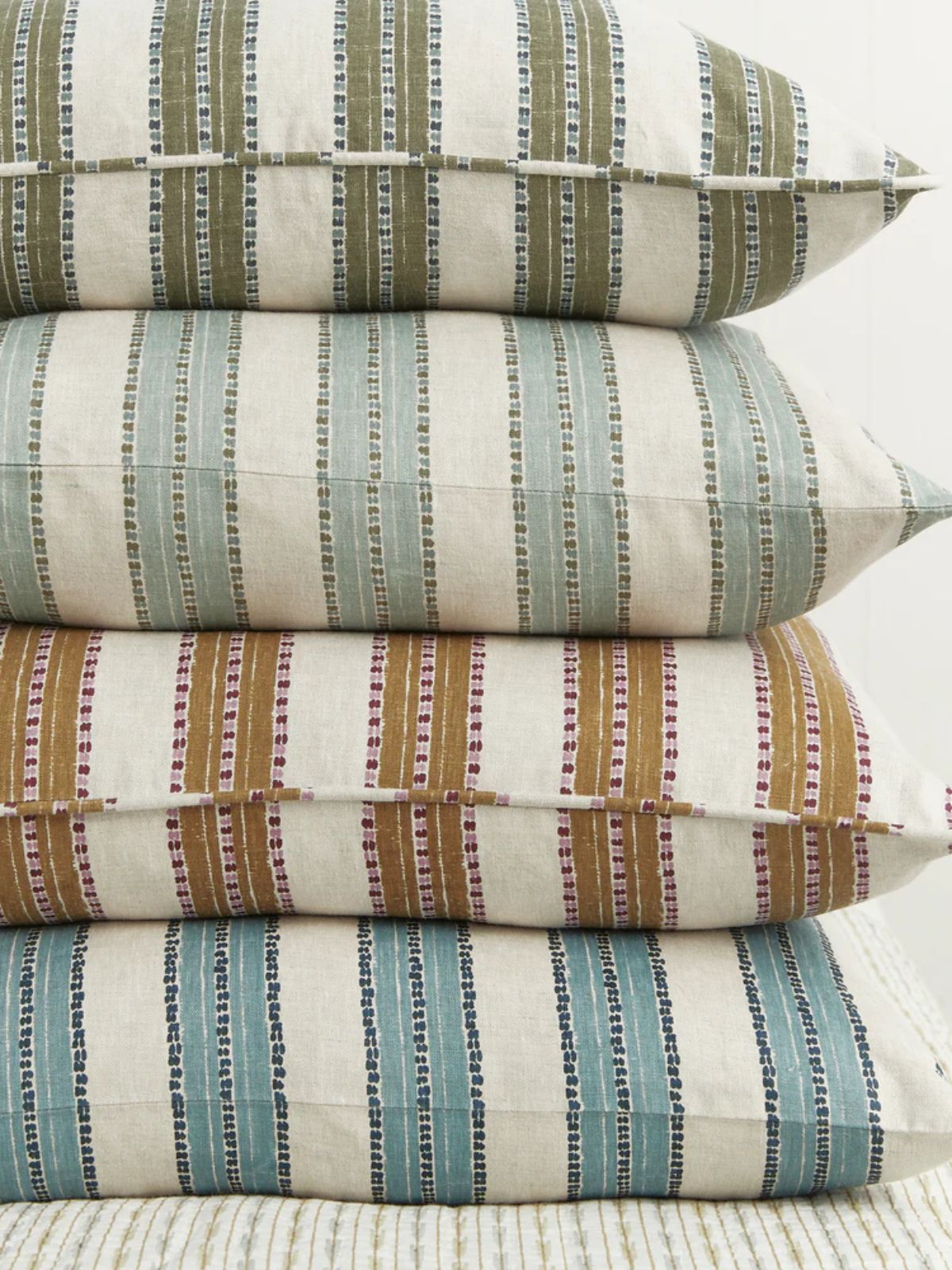 Kesula balances structured stripes with dotted borders to create a design that’s both classic and playful. Brought to life through the artisanal process of hand screen printing.