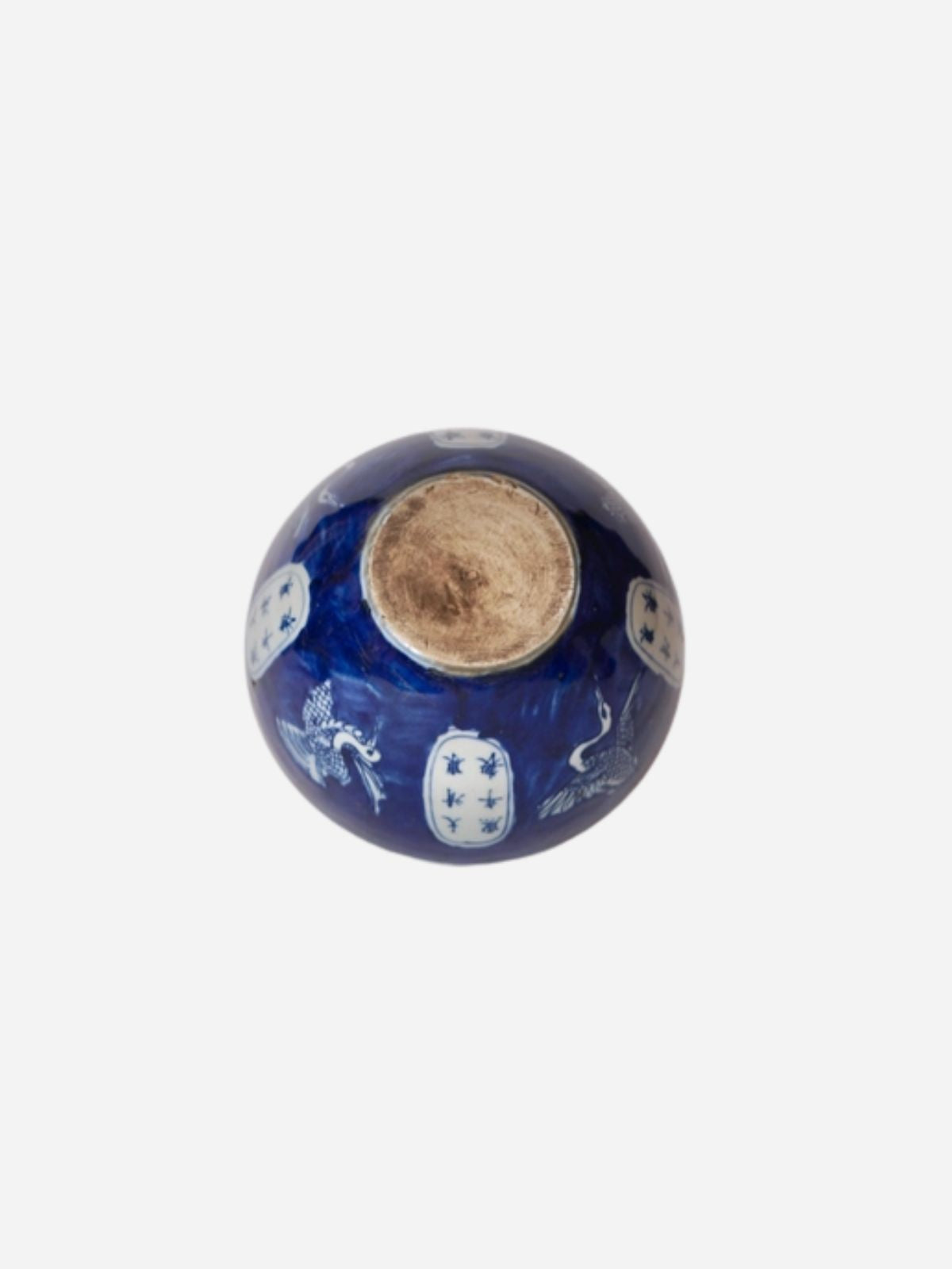 Blue and white porcelain vessels from the antiques markets of Jingdezhen, a town long distinguished by imperial patronage. This piece is a small bowl with an dancing crane motif and a Kangxi reign cartouche