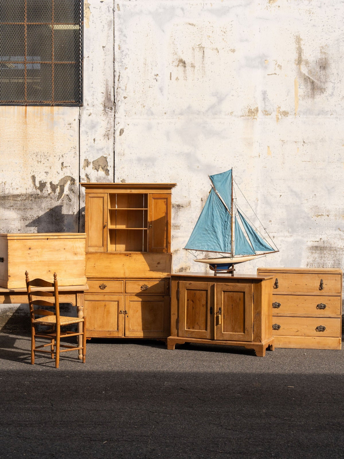 Sourced throughout England and beyond, each piece carries the marks of time — rich in character, patinaed to perfection, and even more beautiful than we imagined. From timeless oak buffets to c.1800s pond yachts, every treasure tells its own story.